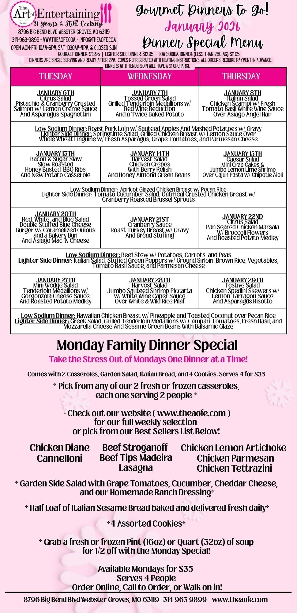 January 2026 (No Dinner Specials Week of December 29th)