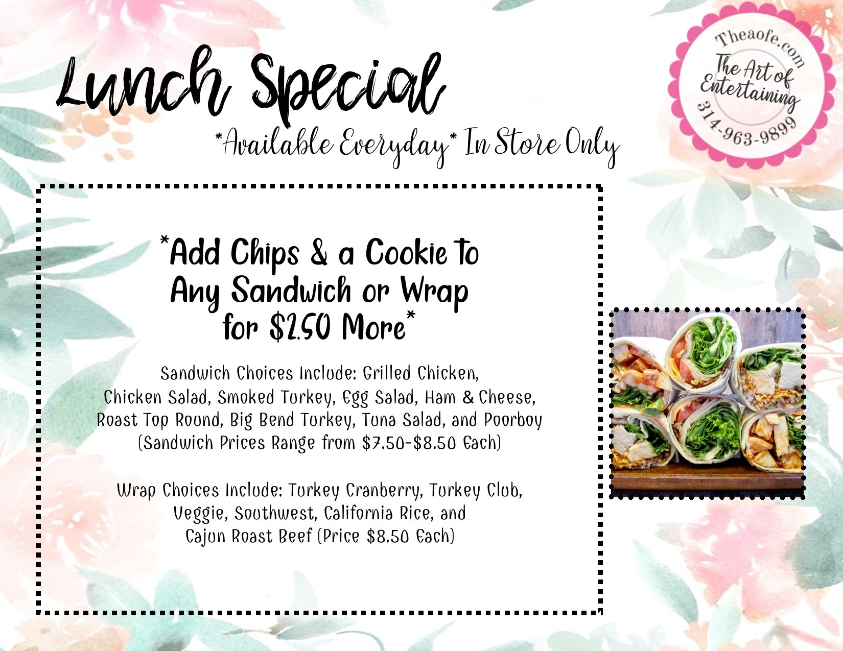 Check out our single-serving dinner specials available for pick up Tuesdays, Wednesdays, and Thursdays – listed below the Monday special!